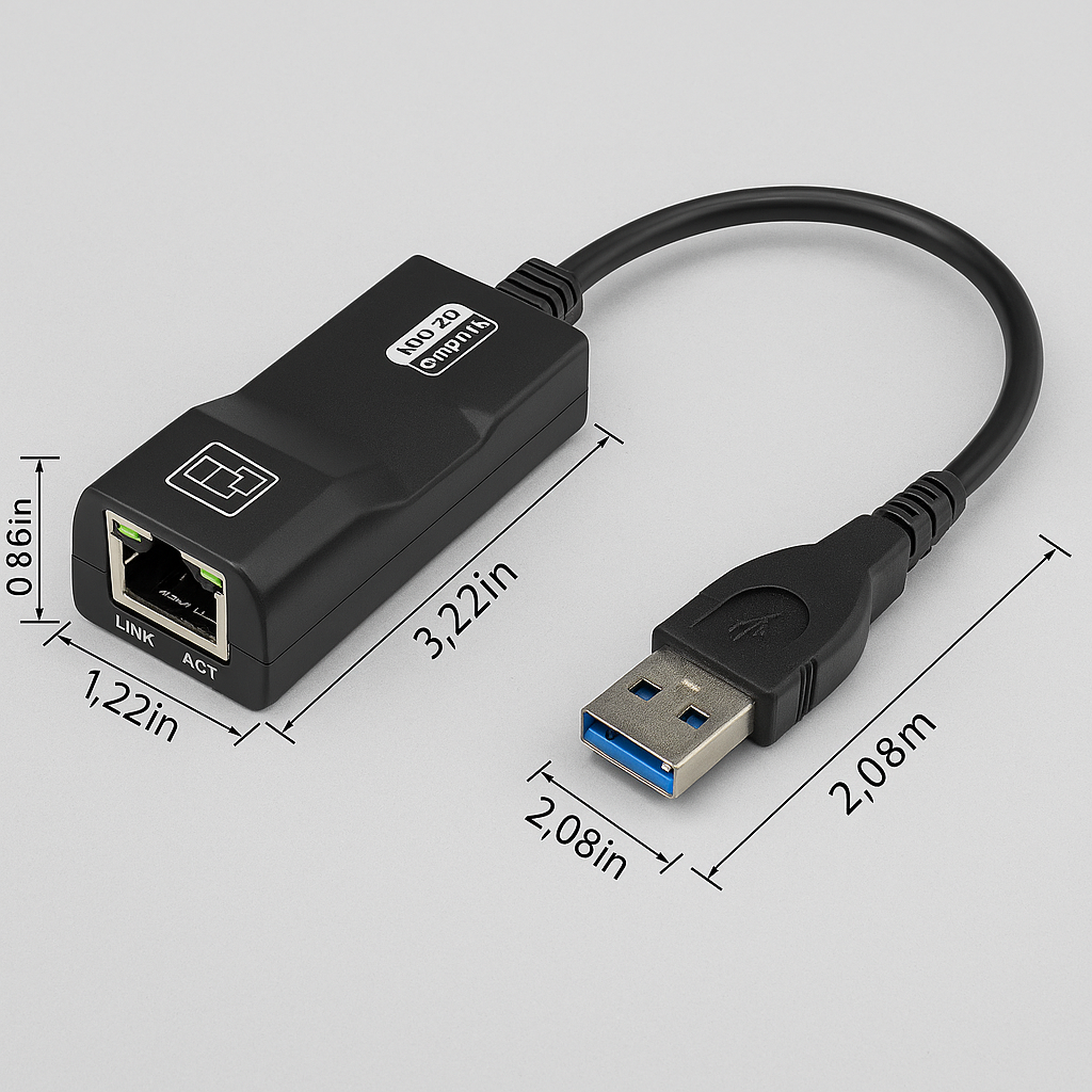 Need a faster, more stable internet connection? This high-speed USB 3.0 to RJ45 LAN adapter is the perfect solution for laptops, Ultrabook's, and tablets that lack a built-in Ethernet port. With support for blazing-fast Gigabit speeds up to 1000Mbps, it ensures smooth streaming, lag-free gaming, and reliable video conferencing — all with simple plug-and-play setup.